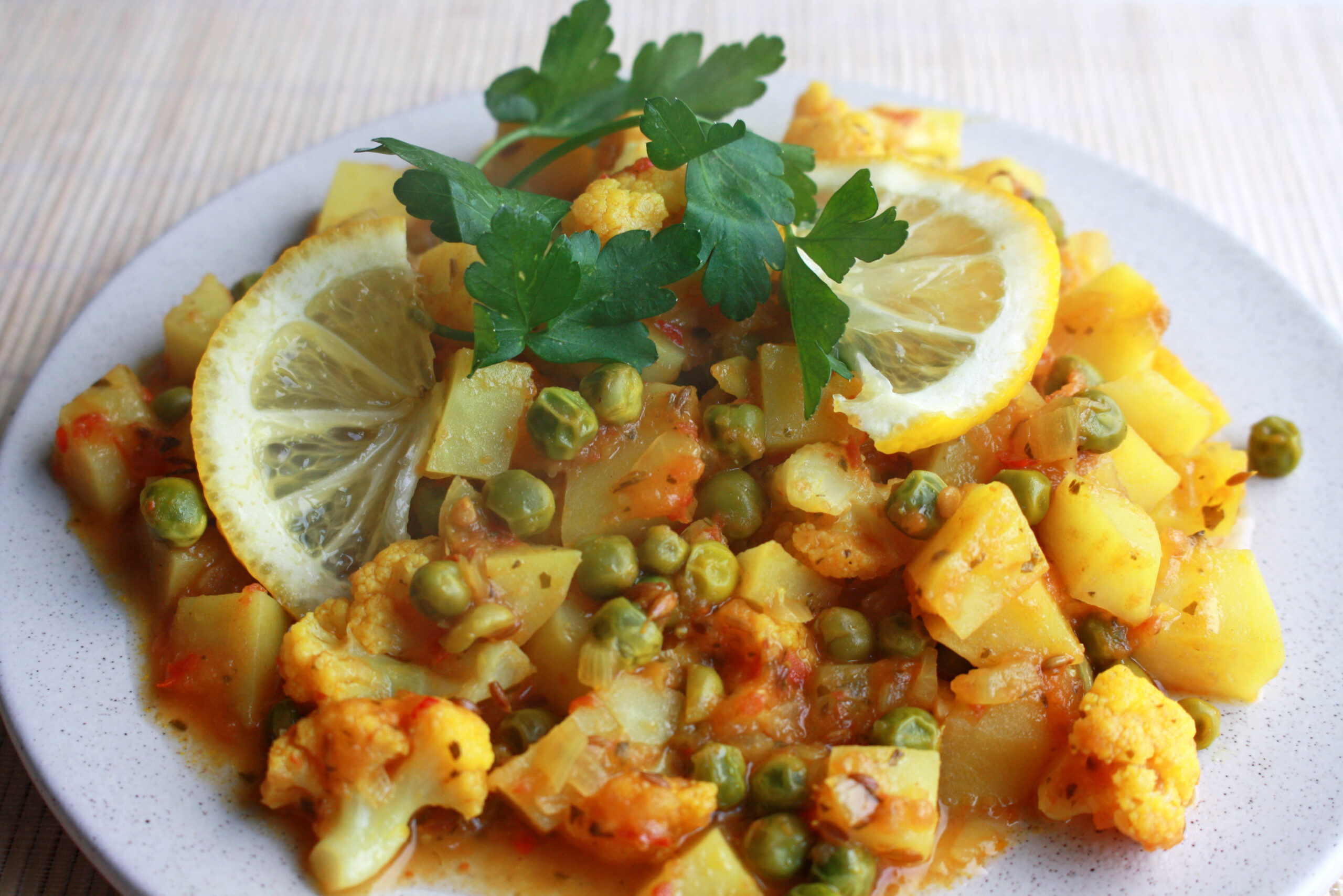 Cauliflower, Potatoes, Green Peas, Indian Spices